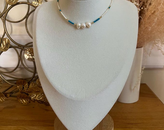 Beaded corolful necklace with gold plated and fresh water pearl beads