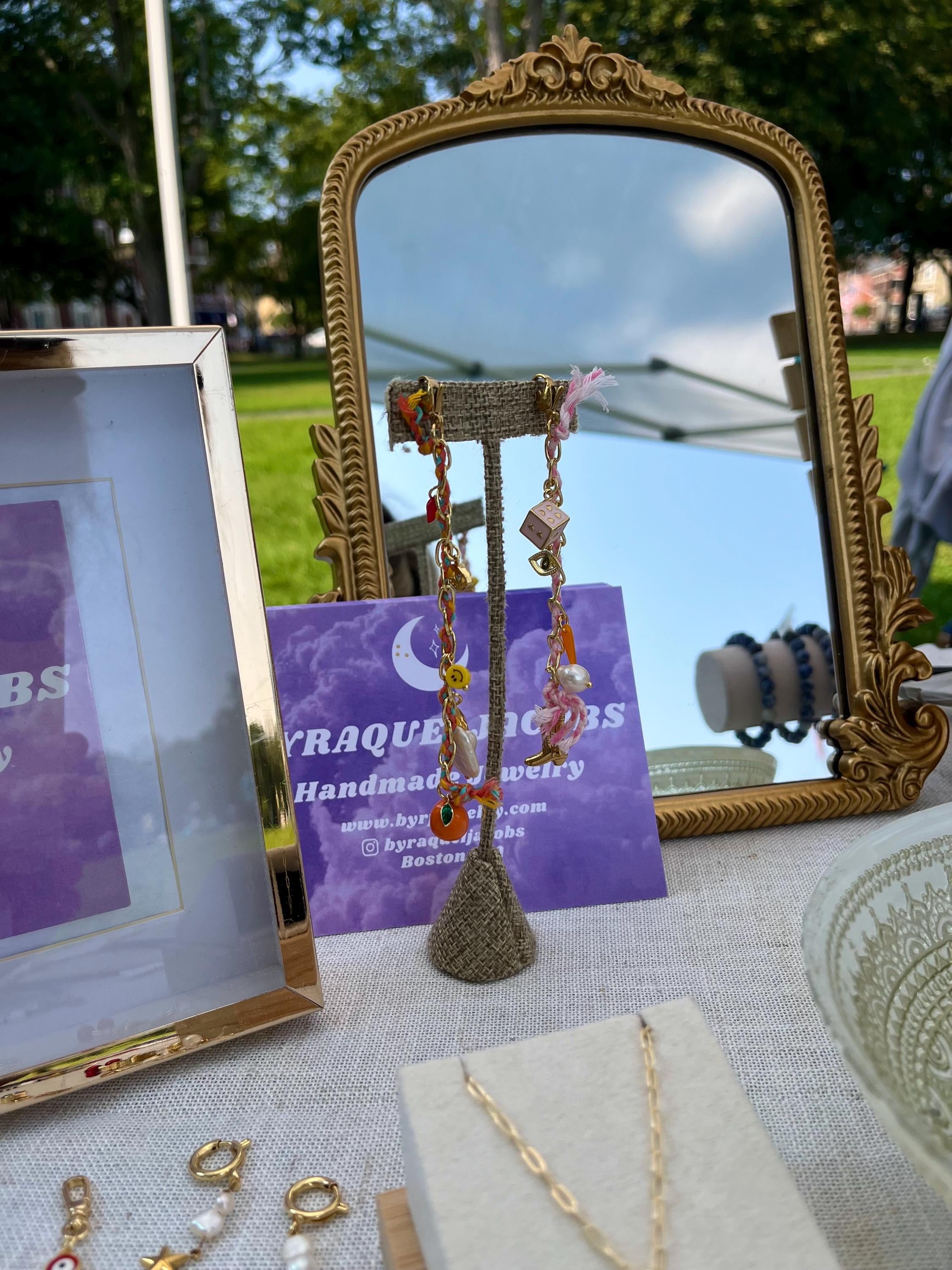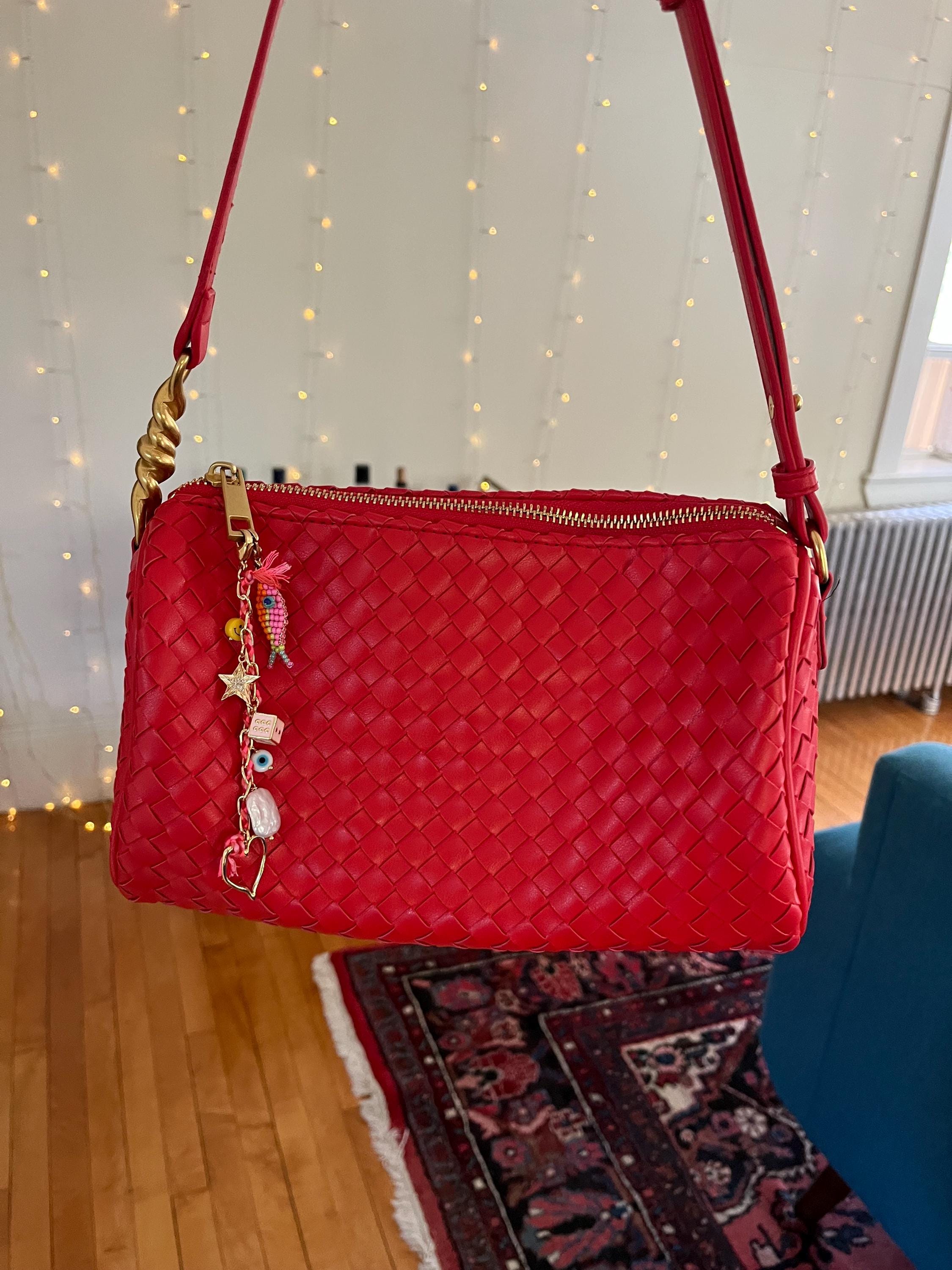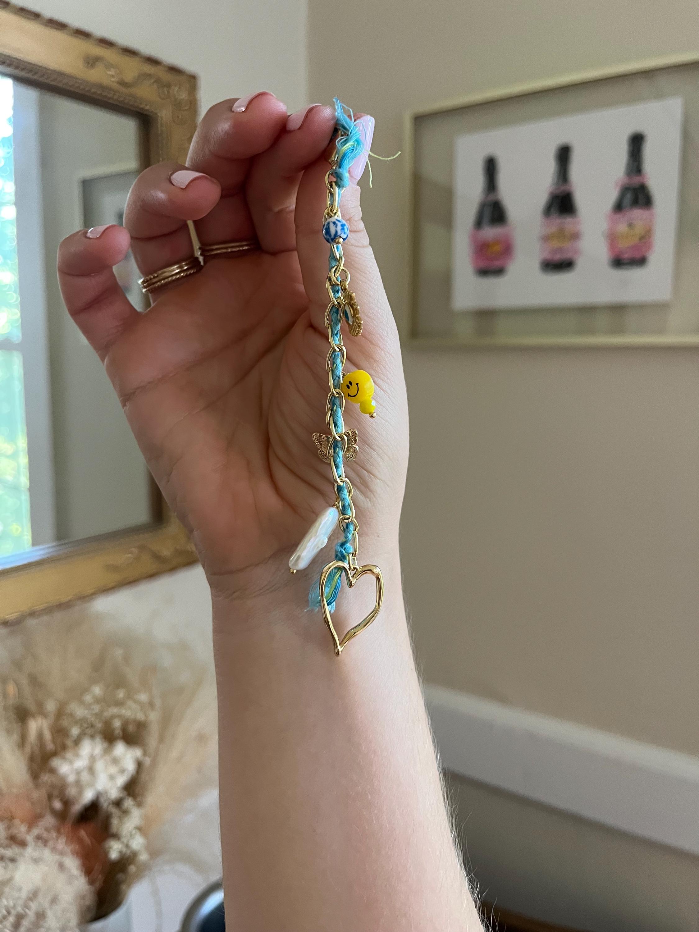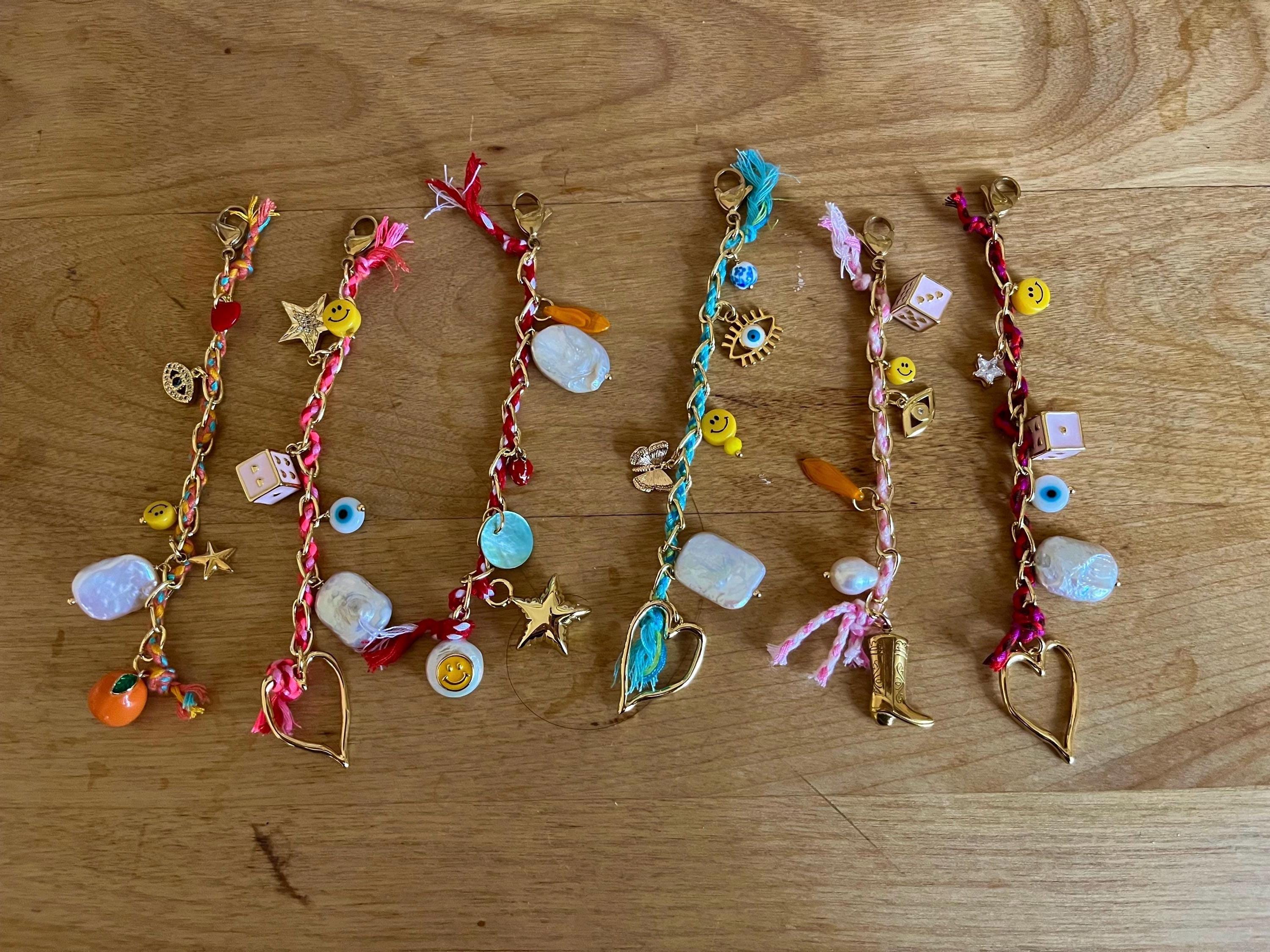 Hand made gold purse charm/keychain! Made by me (Raquel) please specify what colored you’d like or if there are any specific charms you want. otherwise, I will just send a random colorful fun charm! each charm has a lobster claw attached where the jump ring is